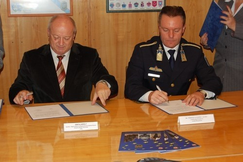 Dr. Töreki Sándor rendőr-ezredes, rendőrségi főtanácsos, főkapitány és Sánta Károly, a Személy-, Vagyonvédelmi és Magánnyomozói Szakmai Kamara Veszprém Megyei Szervezetének elnöke új együttműködési megállapodást írtak alá a Veszprém Megyei Rendőr-főkapitányságon november 24-én.