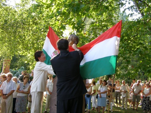 A magyar és a Székelyhimnusz eléneklését követően egy fa elültetésével tették emlékezetesebbé az almádiak a Wass Albert szobor felállítását.