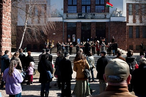A zenekar koncertje után a programok játszóházzal folytatódtak immár a múzeumon belül, ahol a kicsiket gyöngyfűzéssel (itt természetesen a piros-fehér-zöld színek domináltak), és egyéb kézműves játékokkal várták. Lehetett készíteni pártát, huszárcsákót, öltöztetőbabát is...