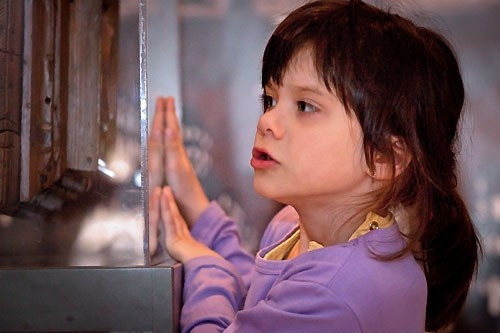Érdeklődő, lelkes kislány a múzeumban.