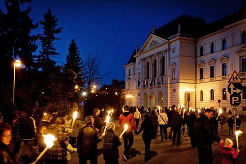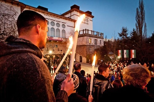 Időközben teljesen besötétedett, így a fáklyák ezernyi mozgó pontja impozáns látványt nyújtott külső-belső szemlélőknek egyaránt.