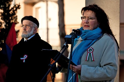 Fodorné Jobbágy Éva, a Veszprémi Örmény Kisebbségi Önkormányzat képviseletében a 12 éve felavatott Kiss Ernő - Lázár Vilmos emléktáblánál méltatta a forradalom hőseit – maroknyi ünneplő társaságában.
