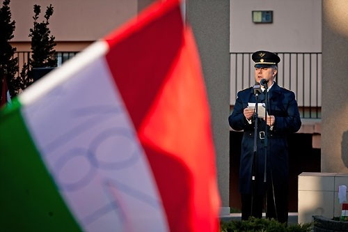 Zentai László ezredes, az MH 54. Veszprém Radarezred parancsnoka beszédében hangsúlyozta: március 15-e nemzetünk szabadság iránti vágyát fejezi ki. 1848 egyben a magyar honvédség születésének éve is.