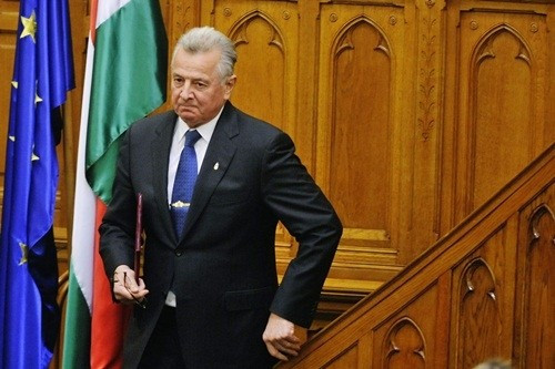 Schmitt Pál köztársasági elnök elhagyja a pulpitust, miután lemondott államfői hivataláról.