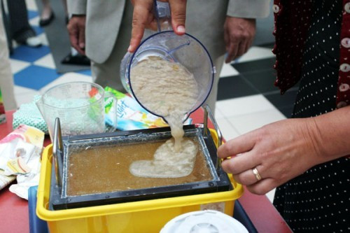 Az eseményt Baka Éva, az Italos Karton Környezetvédelmi Egyesülés vezetője rögtönzött bemutatóval zárta. Az érdeklődők megismerkedhettek a hulladékfeldolgozás mikéntjével, a látottakat bárki háztartásában is hasznosíthatja egyedi dekorációk készítéséhez. Néhány széttépett tejesdobozból egy turmixgép és egy méretre vágott szúnyogháló segítségével újrapapír gyártható. Bakai Éva a frissen készített, még vizes lappal kezében elmondta, bízik benne, hogy az akció hatással lesz a veszprémiek gondolkodásmódjára és szeptember 8. után, az akció végeztével is sokan tapossák majd laposra az italos kartonokat.