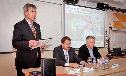 A projekthez az Európai Unió és az Európai Regionális Fejlesztési Alap biztosított vissza nem térítendő támogatást, összesen 216 millió forint értékben. Szauer István projektvezető visszaemlékezve elmondta, 2007-ben írták ki a pályázatot, azonban számos akadály hárult eléjük, ezért csak most sikerült a beruházást befejezni. Végeredményeként 16 intézmény 17 helyszínén közel 160 interaktív csomagot telepített a közbeszerzésen nyertes, veszprémi székhelyű Infornax Kft, melynek ügyvezetője, Sári Lajos a projektzáró konferencián rövid bemutatót is tartott az interaktív tábla sokoldalúságát bizonyítva. Elhangzott még, az új technikai eszközök használatát közel négyszáz pedagógus sajátította el.