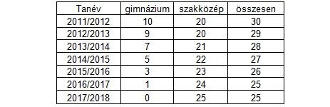 A gimnáziumi osztályok kivezetésével a 2017/2018-as tanévre 10-zel kevesebb osztály lenne az Ipari Szakközépiskolában, ami 20 tanári álláshely megszűnésével járna. Emellett viszont indokolt lenne a 2013/2014-es tanévtől még egy gépész osztályt indítani. Ebben az esetben az osztályok száma az alábbiak szerint alakul. Így 5 osztállyal kevesebb lenne az Ipariban, és ez 10 tanári álláshely megszűnésével járna 5 év alatt.