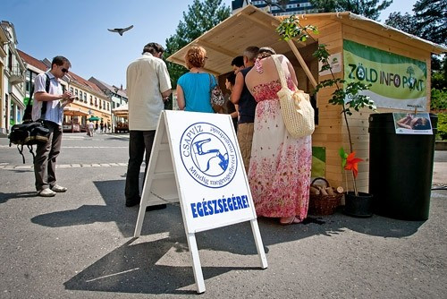 – A Csalán Egyesület által berendezett Kossuth utcai zöld-lak olyan ötleteket és megoldásokat adhat, melyek könnyűszerrel és akár azonnal megvalósíthatók a mindennapokban. Mindemellett hasznos kiadványokkal állunk a hozzánk fordulók rendelkezésére. A standnál többek között lehetőség van ökológiai lábnyomszámításra, melyből azonnal megtudhatjuk, mennyire élünk környezetbarát módon, és bármilyen eredményt is kapjunk, tanácsadás keretében bármilyen zöld-problémánk helyben orvosolható – beszélt munkájáról Decsi Márton, a Csalán Egyesület környezeti tanácsadója.