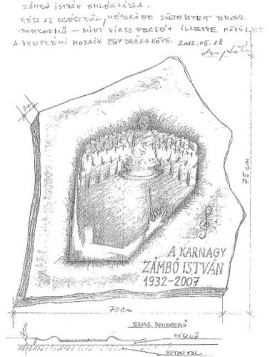 Veszprém Város Vegyeskara 2012-ben azzal a javaslattal fordult a Művészetek Házához és az önkormányzathoz, hogy születésének 80. évfordulója alkalmából állítsanak emléktáblát Zámbó Istvánnak (1932–2007) a Veszprémi Pantheonban. A vegyeskar javaslata és tartalmi megfogalmazása nyomán a Művészetek Háza meghívásos kispályázat keretében három képzőművészt kért fel vázlatkészítésre. A képzőművészekből álló szakértői csoport a Lugossy László által benyújtott tervezetet választotta. A kőből és bronzból készülő emléktábla a legendás arezzói harangot (Arezzóban volt Zámbó István és a kórus egyik első, nemzetközi porondon elért közös sikere) és a közösséget teremtő zeneművészt és szeretett kórusát ábrázolja. Az emléktábla tervezésének, kivitelezésének díja bruttó 445 000 Ft. A díj kisebbik felét, 200 000 forintot az önkormányzat biztosítja, a fennmaradó 245 000 forint előteremtését a táblaállítást kezdeményező Veszprém Város Vegyeskara és Baráti Kör Egyesület vállalta.