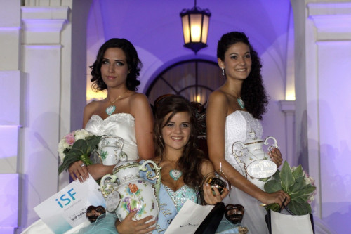 Bőr Viktória, a 187. Anna-bál szépe (k), valamint Antal Dóra, az első (j) és Albert Zsuzsanna, a második udvarhölgy (b) a balatonfüredi Anna Grand Hotelben 2012. július 28-án este.
