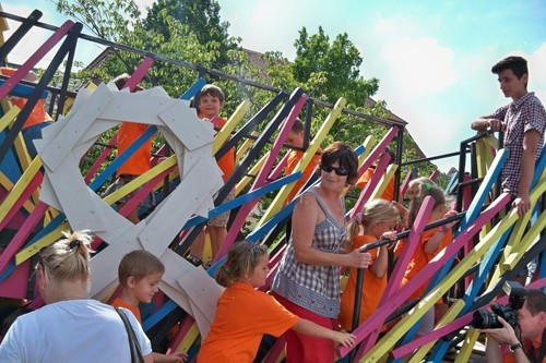 A beszédek elhangzása végén a szemlélődők „birtokba is vehették” az óriáshintát. Gyerekek és felnőttek együttes erővel mozgatták meg a szerkezetet. Majd zárásként a kicsik az Aranyszőrű bárány című magyar népmesének interaktív előadását élvezhették.