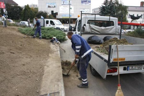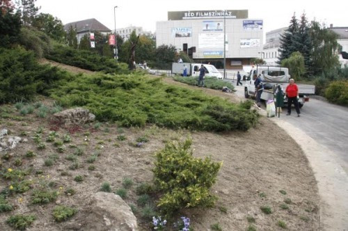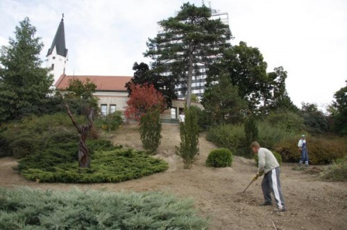 A közüzemi vállalat munkatársai az őszi munkálatokat végzik Veszprém parkjaiban. Évelő növényeket és cserjéket ültetnek, továbbá visszametszik a fákat, bokrokat.