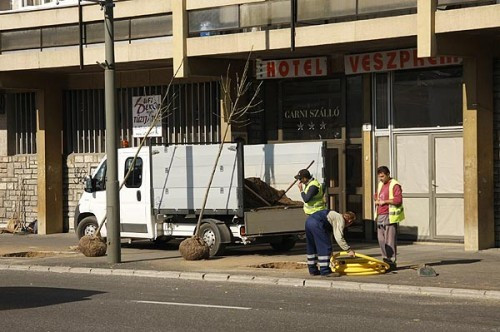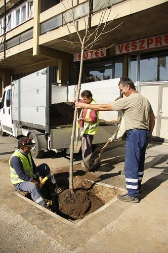 Fákat ültetnek a Hotel előtti járdán a közüzemi vállalat munkatársai. A két éves fák tavasszal már kilombosodnak, javítva ezzel a városképet és árnyékot adva a buszra várakozóknak. Az Óvári Ferenc utca felújítása is folyamatban van, az arra közlekedők figyeljenek a megváltozott forgalmi rendre!