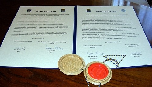 „A partnerek megegyeznek abban, hogy a kétoldalú kapcsolatokat európai értelemben tovább erősítik és építik” – áll abban a dokumentumban, amit Ing. Hans Penz, az Alsó-Ausztriai Tartományi Parlament elnöke, valamint Lasztovicza Jenő, a Veszprém Megyei Önkormányzat elnöke látott el kézjegyével.