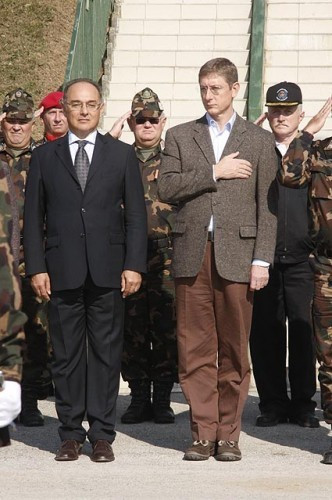 A miniszterelnök köszöntő szavait követően Havril András vezérezredes, a vezérkari főnök egy dísztőrt ajándékozott emlékül a gyakorlatról Gyurcsány Ferencnek.