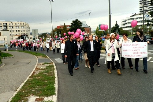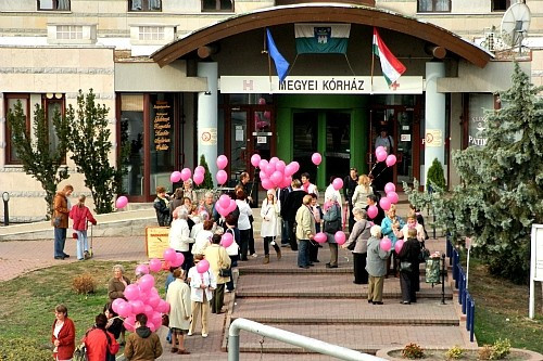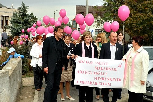 A daganatos betegség megelőzhető, ha időben észreveszik, kezelhető. Erre hívták fel a figyelmet azok, akik a Fagyöngy Emlőműtöttek Egyesülete felhívására szombat délelőtt összegyűltek a megyei kórház előtt, majd innen az Almádi úton át vonultak az Intersparnál felállított szűrőponthoz.