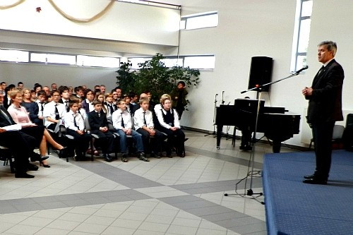 Az eseményt befogadó Simonyi Zsigmond Ének-zenei és Testnevelési Általános Iskola zenés műsorát követően Némedi Lajos alpolgármester köszöntötte a város általános- és középiskoláiból, valamint óvodáiból érkezett pedagógusokat és diákokat.