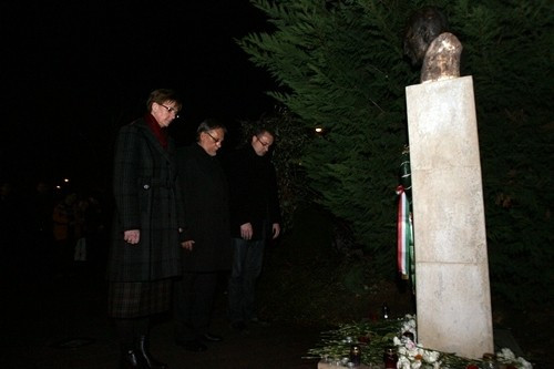 A megemlékezés zárásaként a jelen lévők mécseseket és koszorúkat helyeztek el dr. Brusznyai Árpád ’56-os vértanú szobrához.