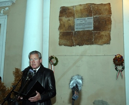 – 56-os forradalom keresztény forradalom volt – hangsúlyozta Pálffy István kereszténydemokrata országgyűlési képviselő beszédében. – Hiszen a kommunista diktatúra harcot folytatott a keresztény egyház, az általa felvállalt értékrend ellen. A forradalom előtti években koncepciós pert indítottak az egyház és vezetői ellen. Brusznyai Árpád a Veszprém megyei nemzeti Forradalmi Tanács elnöke is keresztény elvek szerint tevékenykedett a szabadságharc napjaiban. A humanizmus hatotta át minden egyes cselekedetét. Egyaránt jellemezte jóság, megbocsátás és elszántság, elhivatottság. Még az ellenségében is látta az embert. A hit adta az erejét még a legnehezebb pillanatban, a bitófa alatt is, amikor a himnuszt énekelve ment a halálba.