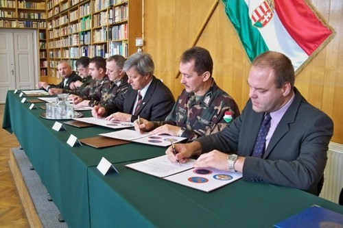 Az együttműködési szerződéseket az Ipari Szakközépiskola és Gimnázium könyvtárában írták alá a honvédség képviselői, az iskolák igazgatói, és Némedi Lajos alpolgármester.