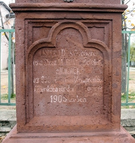 A feszület 45 veszprémi magyar polgár állította 1905-ben Amerikába történő kivándorlásuk előtt, fogadalmuk jelképeként és hazájuk, lakóhelyük iránt érzett hazafias elkötelezettségük, szeretetük bizonyításaként.
