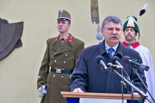 Dr. Kövér László, az országgyűlés elnöke hangsúlyozta, minden nép, amit nem sodort el az idő meg tudta őrizni nemzeti öntudatát. Honfoglaló őseink mikor megérkeztek a Kárpát-medencébe a megtalálás örömét élték át, amely érzésből aztán a hazaszeretet lett. Azonban ahhoz, hogy Európába érjünk nem kellett tovább mennünk, hanem erre a koronára volt szükségünk. Ezért is érezte 12 éve a kormány kötelességének, hogy a koronázási ékszereket ne múzeumban, hanem az őt megillető helyen, a parlamentben helyezzék el. A politikus elmondta, a Szent Korona valamennyi magyar szimbóluma. Magyarnak lenni nem könnyű - jelentette ki az országgyűlés elnöke, hiszen a jó választás nem mindig természetesen jön, folyamatosan hitet kell tennünk a nemzet oldalán. A fiataloknak újabb és újabb erőfeszítéseket kell tenniük, hogy hazájukat biztonságossá tegyék, ehhez pedig a Szent Koronának kell erőt adnia, tette hozzá dr. Kövér László.