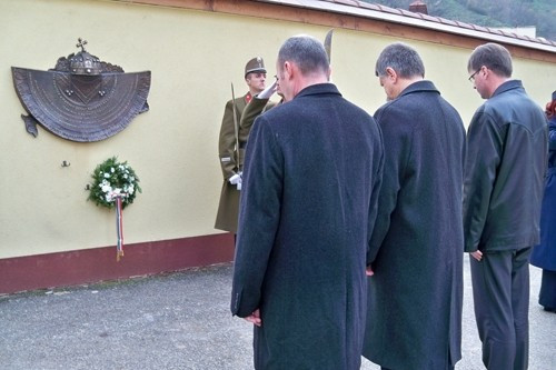 A 2010-ben civil összefogással megvalósult Szent Korona emlékjelnél dr. Horváth Zsolt országgyűlési képviselő köszöntötte a megjelenteket. A politikus elmondta, szerencsére mindig voltak, vannak, és lesznek, akik számára a haza mindennél előbbre való. Elhangzott, az emlékjelet két éve Hende Csaba honvédelmi miniszter avatta fel, tavaly pedig dr. Navracsics Tibor miniszterelnök-helyettes mondott itt beszédet. A politikus arra kérte a hallgatóságot, hogy emlékezzenek meg a hős katonákról, akik életük kockáztatásával, vagy akár életük árán védték a Szent Koronát.