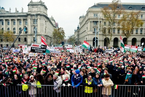 Novák Előd, a Jobbik alelnöke - még a demonstráció előtt írt - vasárnapi közleményében úgy fogalmaz, pártjuk ízléstelennek és a keresztény hagyományokat sértő "provokációnak" tartja, hogy a tüntetésre éppen advent első vasárnapján kerít sort a Fidesz, az MSZP, Bajnai Gordon, a Mazsihisz és a Hit Gyülekezetének "nagykoalíciója, mely csak Izrael érdekében tud összefogni, a magyarság sorskérdéseiben nem".