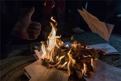 A téren a szervezők szétosztották a diákok között a papírokat, amelyeket kisebb kupacokban meggyújtottak. A demonstrálók rendbontás nélkül elvonultak.