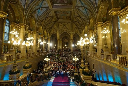 Hátrányos helyzetű magyarországi és határon túli gyermekeket látott vendégül az Országgyűlés és a Nemzetközi Gyermekmentő szolgálat (NGYSZ) az immár hagyománnyá vált parlamenti gyermekkarácsonyon szombaton az Országházban.