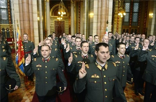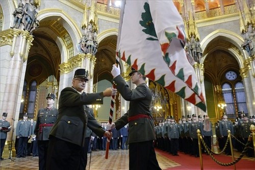 Letették esküjüket a január 1-jétől működő Országgyűlési Őrség tagjai a Parlament kupolatermében, a Szent Korona előtt péntek délután.
