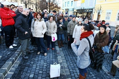 Veszprémiek és vendégeik érdeklődve hallgatták a sok érdekes információt a belváros nevezetességeivel kapcsolatban. A délután egy órára meghirdetett városnéző sétára több mint kétszázan érkeztek az Óváros térre, ahol a Tűztoronyból hallatszó, Csermák Antal nevéhez fűződő verbungos dallamok köszöntötte az egybegyűlteket.