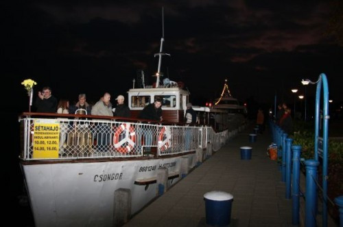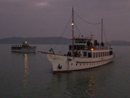 A lassan leszálló alkonyban sorra futott be a kikötőbe a Kelén, a Csongor és a Keszthely motoros. Fedélzetükön még szép számú utas élvezhette a balatoni utazás szépségeit.