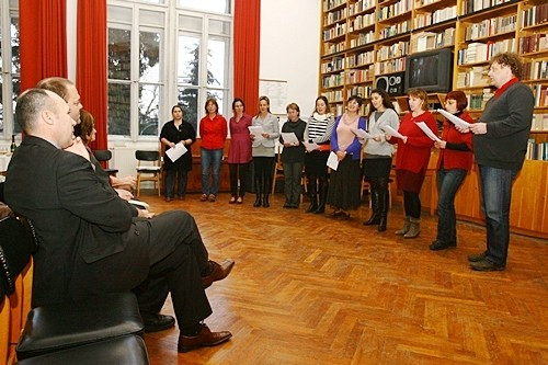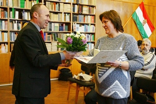 A Pro Meritis-díj átadása után a tantestület tagjai zenés és irodalmi műsorral köszönték meg a két kollégájuk évtizedes munkáját.