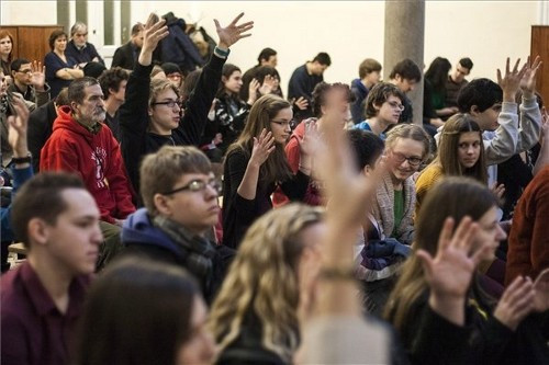 Piróth Kinga, a fővárosi szervezők nevében azt mondta: alapvető céljuk, hogy középiskolai közösséget, az intézményeket összefogó szervezetet hozzanak létre. Úgy érzik, jelen pillanatban Magyarországon az oktatásügy sok sebből vérzik - fogalmazott. A rendezvényen megjelent Mendrey László, a Pedagógusok Demokratikus Szakszervezetének (PDSZ) elnöke, és a Hallgatói Hálózat több tagja is.