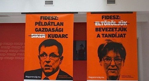 Ezekkel a plakátokkal kampányol az MSZP (Fotó: Népszava)