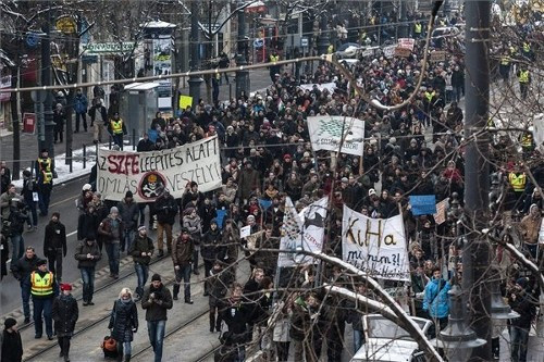 A Corvinus Egyetem Fővám téri épületéhez vonultak tovább azok a demonstrálók, akik Hallgatói Hálózat (HaHa) és a Középiskolai Hálózat által szervezett Deák téri tüntetésről először az Eötvös Loránd Tudományegyetem Bölcsészettudományi Karához (ELTE BTK) mentek. Az MTI tudósítói szerint amikor a tüntetők első csoportja a Corvinus Egyetemhez ért, akkor hagyta el a menet vége a Kálvin teret.
