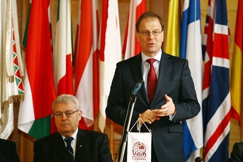 Dr. Markovszky György, a Veszprém Megyei Kereskedelmi és Iparkamara elnöke köszöntötte a megjelenteket. Elmondta, a gazdasági évnyitó megrendezése mára már hagyománnyá vált, az esemény időpontja viszont változik, mivel akkor szeretnék megtartani, amikor a lehető legtöbb információval rendelkeznek. Néhány napja elfogadták az EU költségvetését a 2014-2020 közötti időszakra. A kamara elnöke kiemelte, ügyelnünk kell majd arra, hogy a támogatásokat megfelelően osszuk el, valamint hogy az előző ciklus elején elkövetett hibák ne jöjjenek ismét elő. A pénz 60 százalékát a kormány munkahelyteremtésre szeretné felhasználni. Ez lehet az első lépés a gazdaság helyreállításában – jelentette ki dr. Markovszky György.