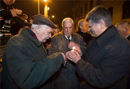 Csendes mécsesgyújtással emlékeztek a kommunista diktatúra áldozataira hétfő este a Lánchíd budai hídfőjénél az Országgyűlés, a kormány, a fővárosi önkormányzat és a kerületek képviselői, valamint civilek.