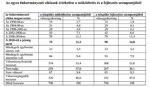 Az elmúlt 20 év vizsgálata során a felmérést végzők a településünk működtetése és fejlesztése szempontjából tették fel kérdéseiket. Mindkét szempont szerint egyértelműen a 2010-től napjainkig tartó önkormányzati időszakot tartják a legsikeresebbnek a megkérdezettek.