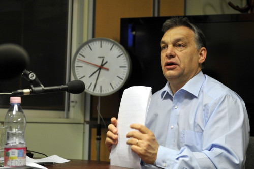 Orbán Viktor miniszterelnök élő adásban ad interjút a Kossuth Rádió 180 perc című műsorában, a Magyar Rádió stúdiójában 2013. március 1-jén.