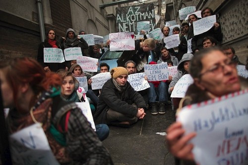 Csütörtök délelőtt tüntetők hatoltak be a Fidesz budapesti székházának udvarára az alaptörvény negyedik módosítása ellen tiltakozva. A Fidesz első reagálásban azt közölte, az agressziót nem tartja elfogadható eszköznek, és ha Bajnai Gordon előre szól, akkor az embereit minden további nélkül beengedik a Fidesz székházába.