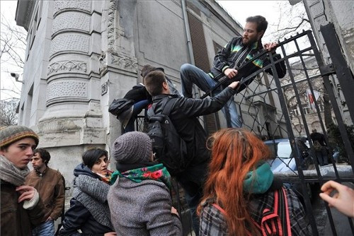 A civil demonstrálók, akik a bejáratot védő vaskapun másztak át, akciójukat indokolva azt mondták, az alaptörvény negyedik módosítása ellen tiltakoznak. Az épületbe nem jutottak be. Az MTI tudósítójával a helyszínen lévők azt közölték, mindannyian civilek, szervezőjük nincs, spontán megmozdulásként gyűltek egybe.