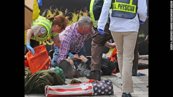 A mentők hordágyakkal és kerekesszékekkel érkeztek az áldozatokhoz. A rohamkocsik hamar felsorakoztak épületről épületre. A jajgatás és a pánik közepette sokan telefonáltak. „Anya, jól vagyok.” Ezeket a szavakat a Boston Globe riportere, Billy Baker sokat hallotta, ahogy a helyszínen az emberek között járkált. Twitteren megosztotta, mit látott és hallott: „A célban dolgozó önkénteseknek azt mondták, szaladjanak. A félelem 9/11-hez, vagy a cunamihaz hasonlítható.” Idegőrlő pillanatok voltak ezek, ahogy az emberek próbáltak rájönni, mi történhetett, vagy hová mehetnének. Hátborzongató jeleneteket vázolt fel a közösségi oldalon, a Charlesmark Hotel előtti teret csatatérhez hasonlította – minden túlzás nélkül. Zavarodottság. Kétségbeesés. Pletykák keltek lábra. „Nem biztonságos itt lenni” - mondta egy bostoni rendőrtiszt Bakernek.