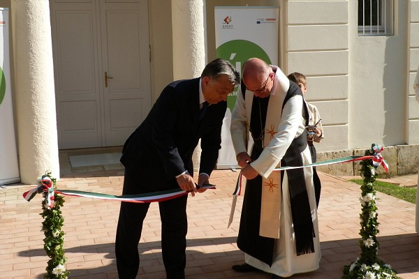 A kormányfő beszéde után Orbán Viktor átadta a ciszterci apátság új látogatóközpontját, amit Dékány Sixtus rögtön fel is szentelt.