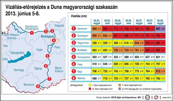 Budapestnél 664 centiméter a Duna vízszintje. Mindenhol jelentősen emelkedett a folyó vízállása. Budapestnél az eddigi legnagyobb vízállást 2006-ban rögzítették, akkor 860 centiméter volt a Duna vízállása.