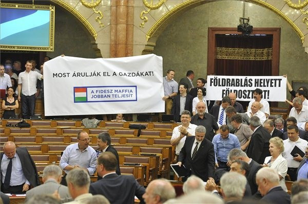 A tervekkel ellentétben nem névszerinti, hanem gépi szavazással fogadta el az Országgyűlés pénteki ülésén 253 igen és 17 nem szavazattal, tartózkodás nélkül az új földtörvényt, miközben a Jobbik-frakció tagjai az elnöki pulpituson állva azt skandálták: "hazaárulók!"