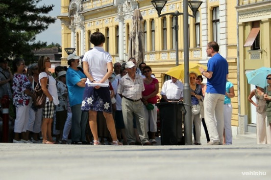 Az Óváros téren azért összegyűlt egy jó harminc fős csoport. Navracsics Tibor még gyorsan nyilatkozott a tévének (illő távolságból is megütötte fülünket a Tavares szó), váltott pár szót az ismerősökkel és ismeretlenekkel, amikor pedig a Tűztorony harangjátéka elhallgatott, megkezdődött az utazásunk időben és térben.