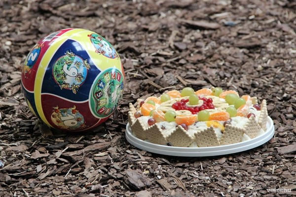 A labda is csak addig volt érdekes, amíg Tjobbe és társai észre nem vették a tortát, ami innen, a plexifal másik oldaláról igen finomnak nézett ki. Persze megtanultuk már, hogy ne higgyünk a szemünknek, ezért meg is kóstoltunk egy szeletet a finomságból, ami lényegében nem más, mint mézzel összetapasztott főtt rizs, gyümölcsök és háztartási keksz. Az élményt a hangulatjavító gyümölcsdarabkák ellenére a rizs jellegtelen íze uralja. Kétségtelenül egészséges ételről beszélünk, de a modern ember ízfokozókhoz szokott nyelvének túlságosan jellegtelen.