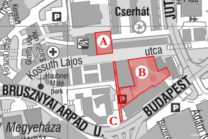 - Főposta tér (a Kossuth utcai posta előtti tér)